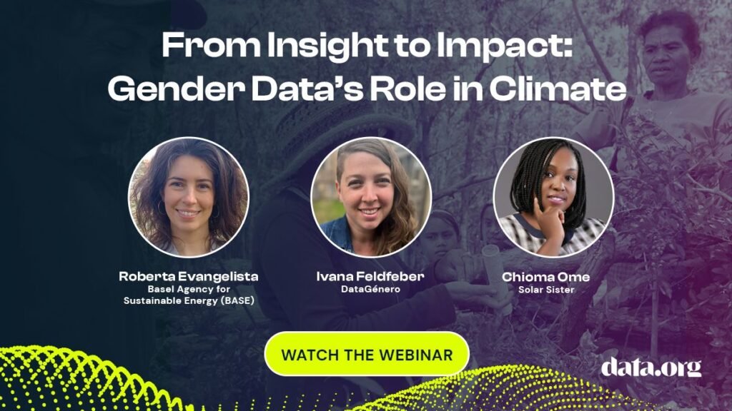 Webinario organizado por Data.org donde se exploran las oportunidades y desafíos de la experiencia trabajando con datos de género y el potencial que tienen para impulsar soluciones climáticas.